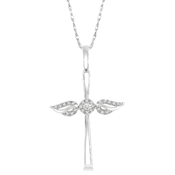 0.10ctw Single Cut Diamond I1-2 Clarity; IJ Colour Angel Wings Cross 10K White Gold Pendant (Chain not included)