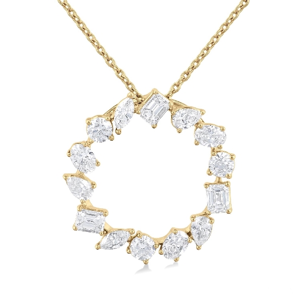 Mixed Shape Diamond Circle 1.00ctw Diamond SI2-I1 Clarity; HI Colour 14K Yellow Gold Pendant and Chain - 16-18 Inch