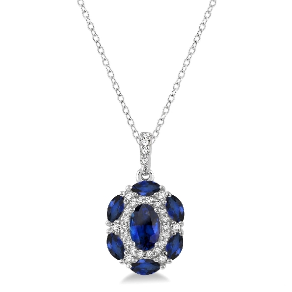 Oval and Marquise Shape Blue Sapphires with 0.15ctw Diamond SI2-I1 Clarity; HI Colour 14K White Gold Pendant and Chain - 16-18 Inch