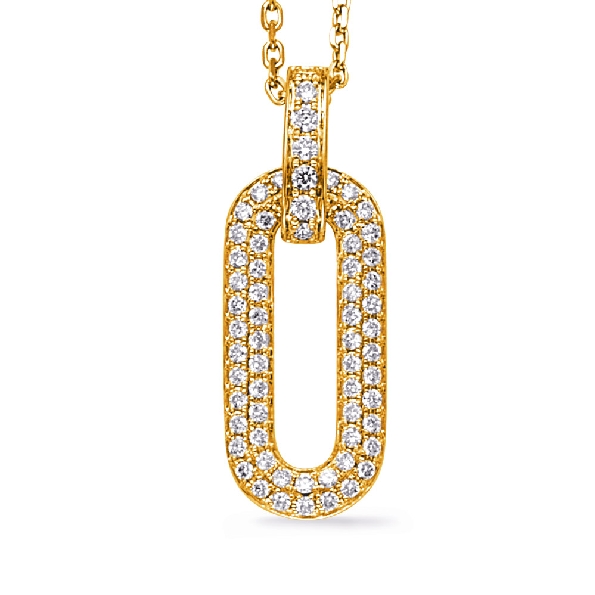 0.42ctw Pave Diamond Pave SI1 Clarity; G Colour Small Oval 14K Yellow Gold Pendant and 16- 18 Inch Diamond Cut Cable Chain