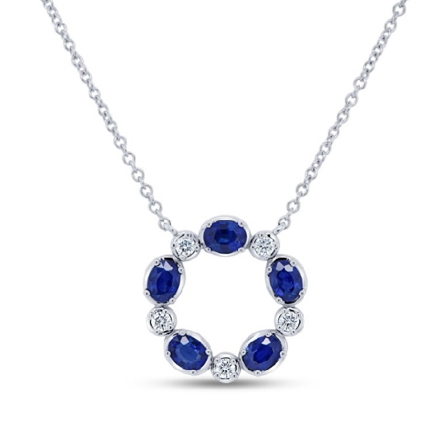 Five Oval Shape Sapphire 1.12ctw with 0.16ctw Diamond SI Clarity; GH Colour Stationary Circle 18K White Necklace 16-18 Inch - by Uneek Fine Jewellery