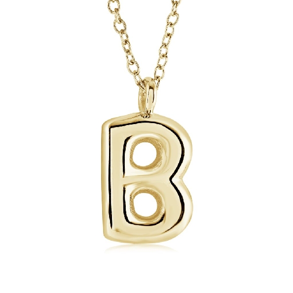 Stainless Steel with Yellow Gold Ion Plating Bubble Letter B Pendant and Chain - 14 - 18 Inch - Veloria by Italgem Steel