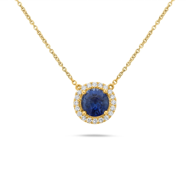 Round Blue Sapphire 1.95ct with 0.14ctw Diamond Halo 18K Yellow Gold Necklace - 18 Inch Adjustable Chain with Open Heart Charm
