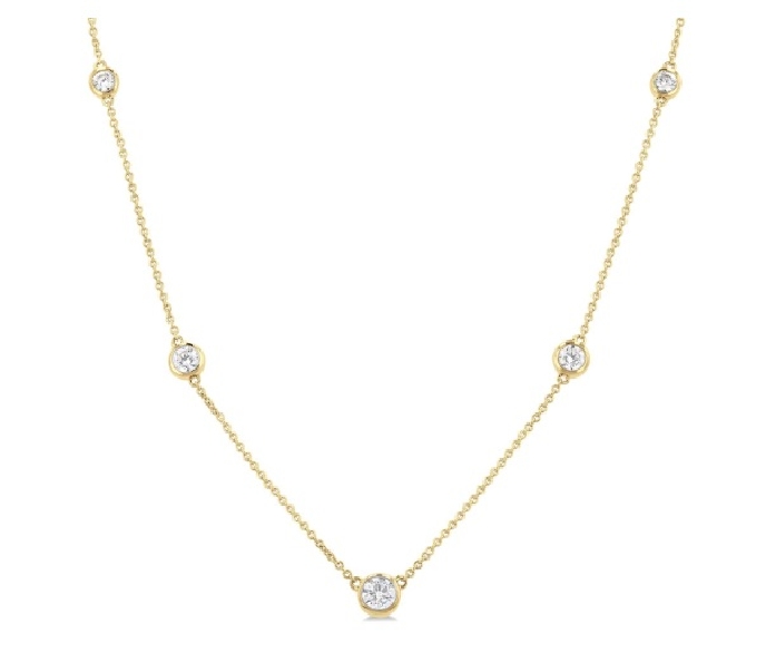 1.00ctw Diamond SI2-I1 Clarity; IJ Colour Bezel Five Station 14K Yellow Gold Necklace - 16-18 Inch MSRP: $4,995 SKU: PE41656 Get more info on this Share: Share on Twitter Share on Pinterest Share on Facebook
