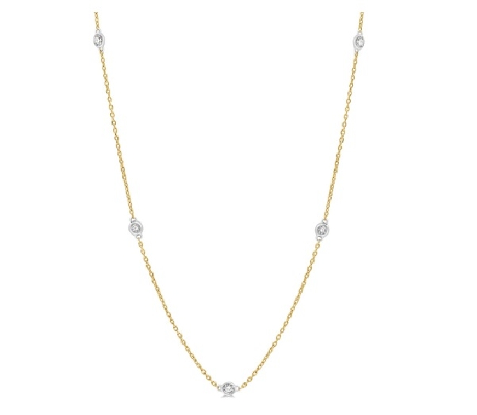 0.25ctw Diamond SI2-I1 Clarity; IJ Colour Bezel Station 14K Yellow and White Gold Necklace - 16-18 Inch