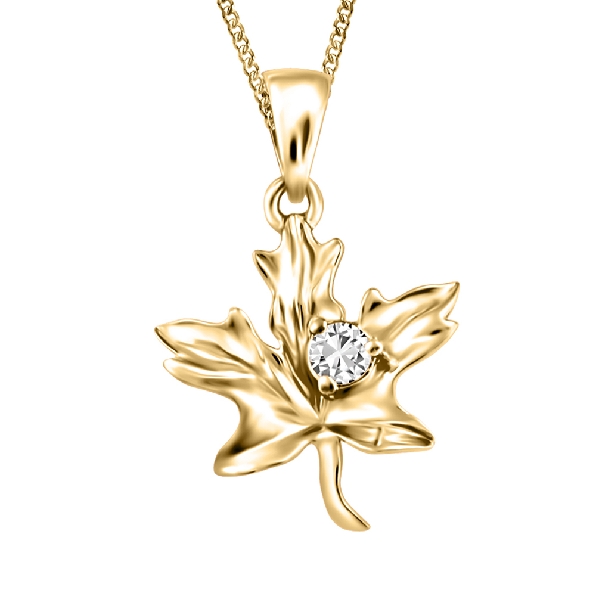 0.056ct Fire and Ice Canadian Diamond I1 Clarity; G-I Colour (CAD308820) Polished Maple Leaf 10K Yellow Gold Pendant and Chain - Made in Canada