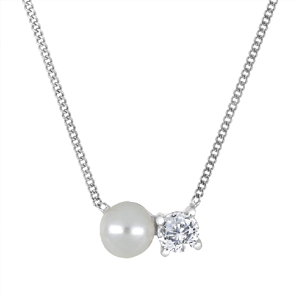 0.143ct Fire and Ice Canadian Diamond I1 Clarity; G-I Colour (CAD309837) and 4mm Fresh Water Pearl 10K White Gold Pendant & Chain - Made in Canada