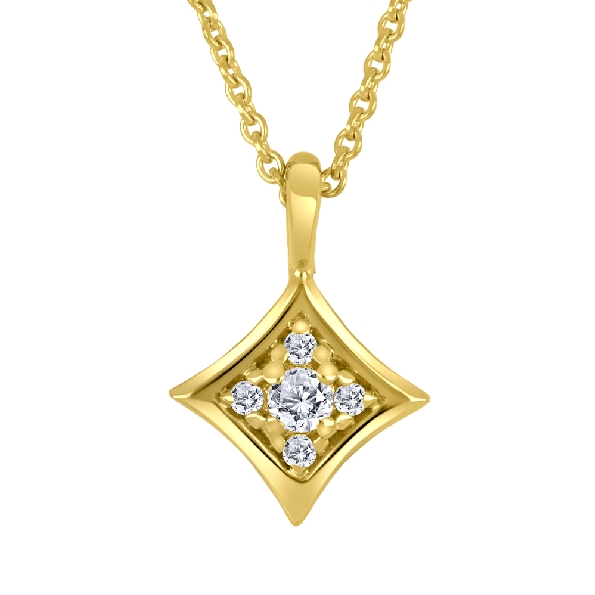 0.036ct Fire and Ice Canadian Diamond I1 Clarity; G-I Colour (CAD310095) with 0.02ctw Accent Diamond Pointed Square 10K Yellow Gold Pendant Chain - 16 -18 Inch - Made in Canada