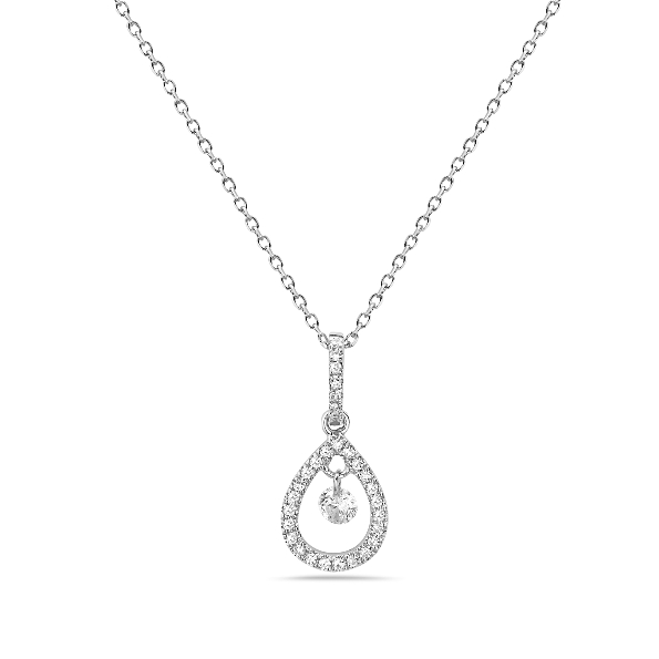 0.14ct Diamond Halo Open Pear with Single Diamond Drop 14K White Gold Pendant and Chain by Bassali Jewellery - 16 - 18 Inch