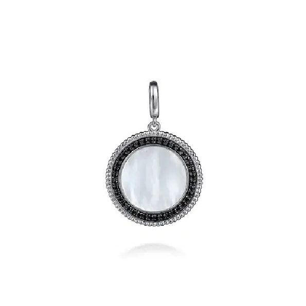 Round Medallion with White Mother Of Pearl and Black Spinel Bead Design Border Sterling Silver Pendant - from the Bujukan Collection by Gabriel & Co. - Serial No. S2242292