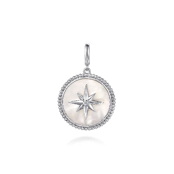 Round Medallion with White Mother Of Pearl and White Sapphire Starburst Sterling Silver Pendant - from the Bujukan Collection by Gabriel & Co. - Serial No. S2242294