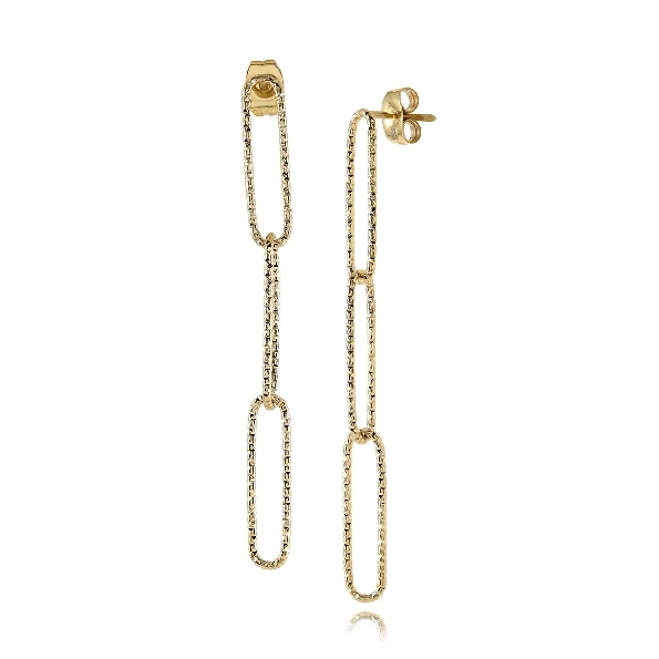 Stainless Steel with Yellow Gold Ion Plating Diamond Cut Paperclip Sparkle Link Dangle Earrings - Veloria by Italgem Steel