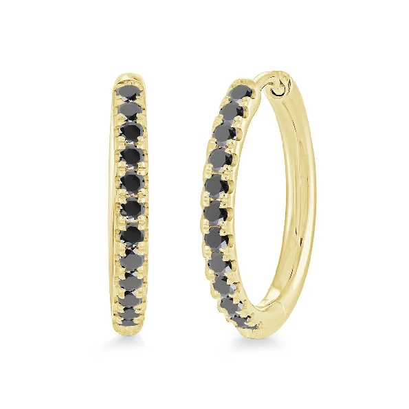 Stainless Steel with Yellow Gold Ion Plating 22mm Black Micro-Pave set CZ Stone Eternity Hoop Earrings - Veloria by Italgem Steel