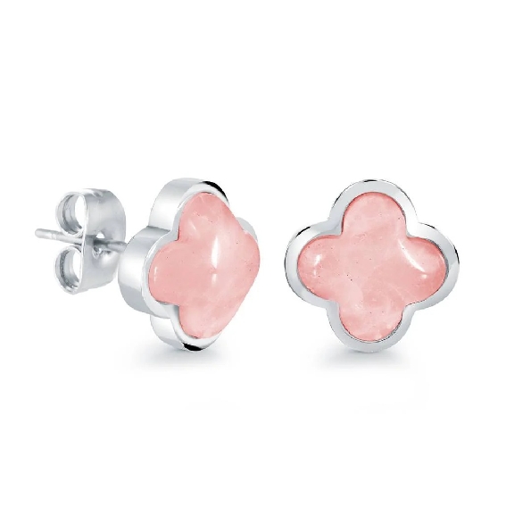 Stainless Steel 10mm Rose Quartz Clover Stud Earrings - Veloria by Italgem Steel MSRP: $60 SKU: SEA485-1 Get more info on this Share: Share on Twitter Share on Pinterest Share on Facebook