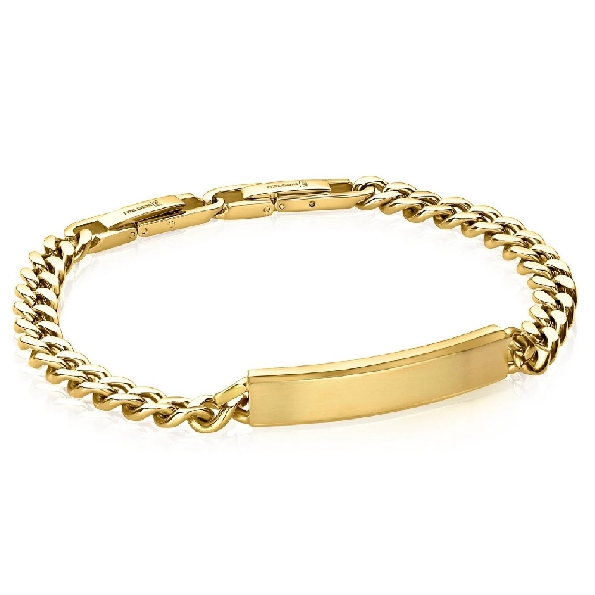 Stainless Steel With Yellow Ion Plating Curb Link with 7mm ID-Plate Bracelet by Italgem Steel - 8 Inch Adjustable