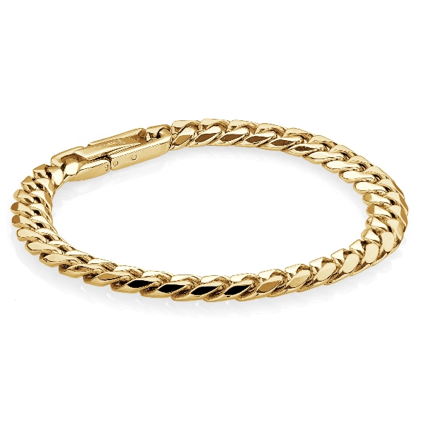 Stainless Steel with Yellow Gold Ion Plating 7.7mm Polished Curb Link Bracelet by Italgem Steel - 8 Inch