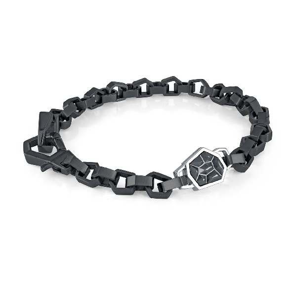 Stainless Steel Black Ion Plated with Geometric Links and Fancy Lobster Clasp Bracelet by Italgem Steel - 8 Inch