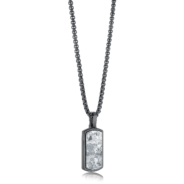 Stainless Steel Black Ion Finish Titanium Inlay Dog Tag and Round Box Link Chain by Italgem Steel - 20 Inch