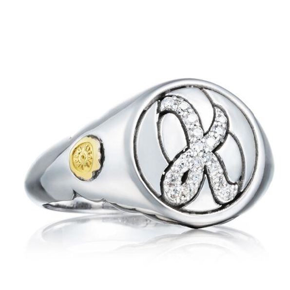 Tacori Initial K Love Letters Pave Monogram 0.11ctw Diamond I Clarity; I Colour Sterling Silver and 18K Yellow Gold Ring - Size 7 - 50% Off - Final Sale