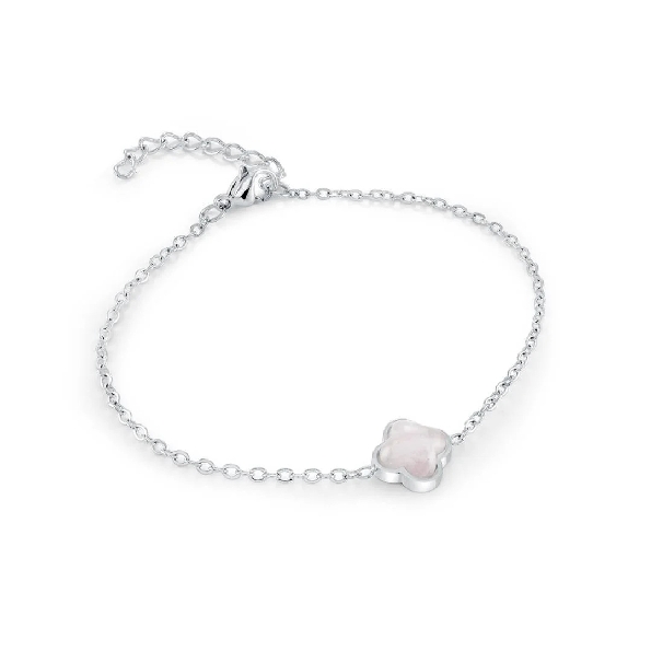 Stainless Steel 10mm Rose Quartz Clover Station Bracelet - 6 - 7 Inch Adjustable - Veloria by Italgem Steel