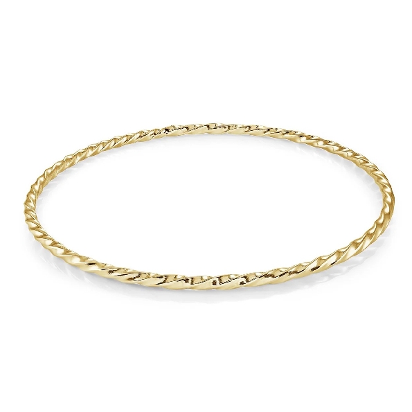 Stainless Steel with Yellow Gold Ion Finish 2.5mm Twisted Bangle - Veloria by Italgem Steel MSRP: $60 SKU: SWBG119-GO-1 Get more info on this Share: Share on Twitter Share on Pinterest Share on Facebook