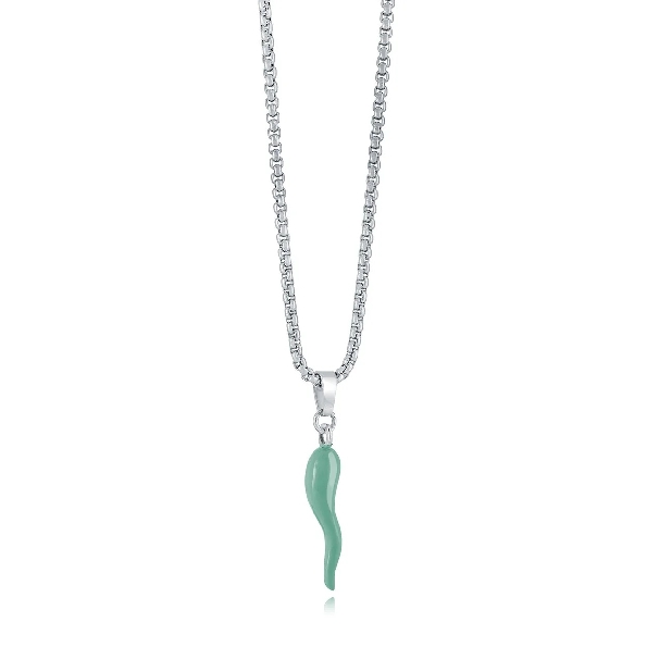 Stainless Steel Blue Enamel Cornetto Italian Horn Pendant and Round Box Chain - 18 Inch MSRP: $99 SKU: SWP105-1 Get more info on this Share: Share on Twitter Share on Pinterest Share on Facebook
