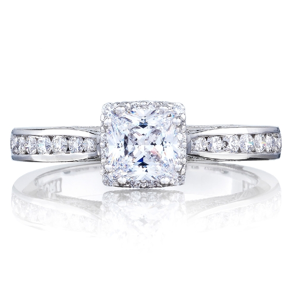 2646-2.5 PR 5 W 0.43ctw Diamond VS Clarity; G Colour with Princess Cut Cubic Zirconia Centre Dantela 18K White Gold Ring Mount by TACORI - Serial No. 316705 - TACORI Vault - Limited Availability