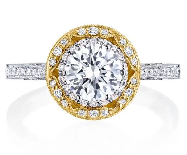 HT 2570 RD 6 W Y - 0.36ctw Diamond VS Clarity; G Colour set with Cubic Zirconia Centre Chandelier Double Halo 18K White and Yellow Gold Ring - Serial No. 397780 - Tacori Vault - Limited Availability