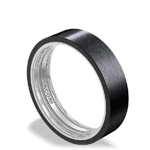 157-6BTWM LG - 6mm Flat Top Matte Finish Black Titanium and 18K White Gold Interior Band by Tacori - Serial No. 621054