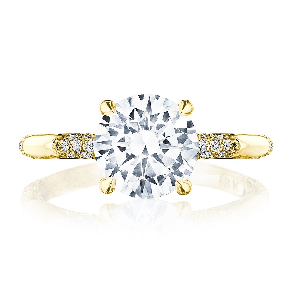 HT 2582 RD 8 Y - 0.19ctw Diamond VS Clarity; G Colour Round Cubic Zirconia Centre with Pave Crescent Sections and Signature Design Founders Solitaire 18K Yellow Gold Ring by Tacori - Serial No. 646539