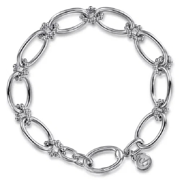 Bujukan Polished Oval and Bead Link Sterling Silver Bracelet from the Bujukan Collection by Gabriel & Co. - Serial No. S2242313