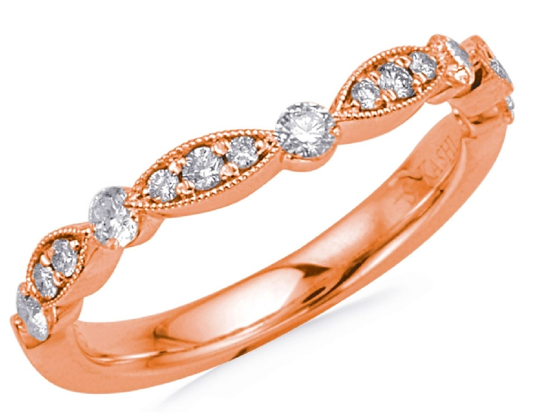 0.35ctw Diamond SI1 Clarity; G Colour Contoured Marquise Shapes with Milgrain accent 14K Rose Gold Band