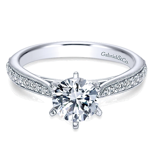 6 Claw Solitaire with Diamond Shoulders Alloy Sample Ring Mount by Gabriel & Co. - ER6687ALZJJ