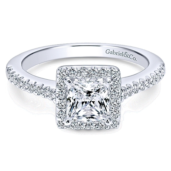 Princess Solitaire with Halo & Diamond Shoulders Alloy Sample Ring Mount by Gabriel & Co. - ER5825ALZJJ