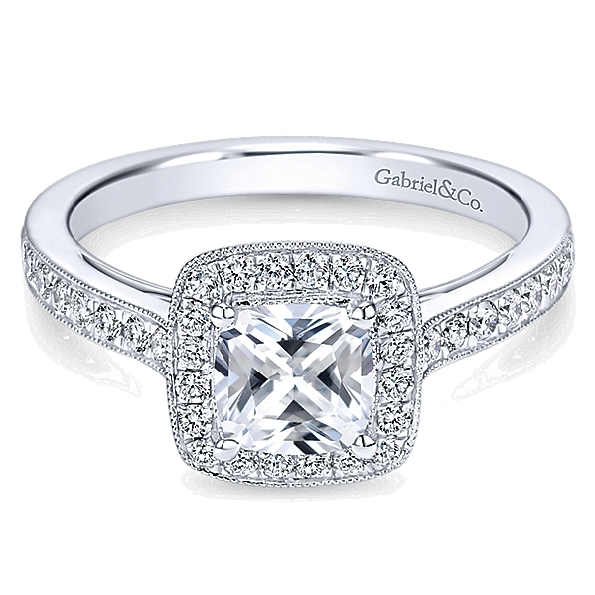 Solitaire with Cushion Halo & Diamond Shoulders Alloy Sample Ring Mount by Gabriel & Co. - ER7527ALZJJ