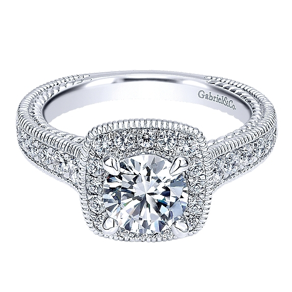 Solitaire with Cushion Halo & Graduated Shoulder Diamonds Alloy Sample Ring Mount by Gabriel & Co. - ER10107ALZJJ