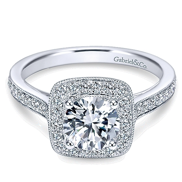 Solitaire with Cushion Halo & Shoulder Diamonds Alloy Sample Ring Mount by Gabriel & Co. - ER7525ALZJJ