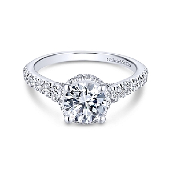 Solitaire with Round Halo and Graduated Diamond Shoulders and Gallery Accent Diamonds Alloy Sample Ring Mount by Gabriel & Co. - ER13856R4ALZJJ