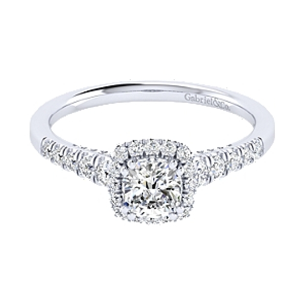 Solitaire with Cushion Halo and Graduated Diamond Shoulders Alloy Sample Ring Mount by Gabriel & Co. - ER12658C4ALZJJ