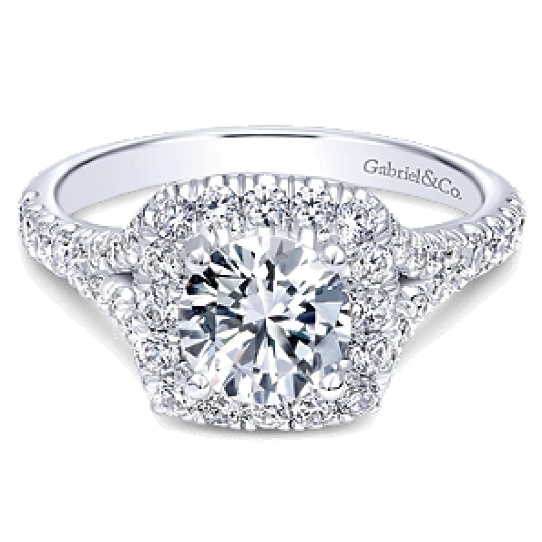 Solitaire with Cushion Halo and Split Diamond Shoulders Alloy Sample Ring Mount by Gabriel & Co. - ER10290ALZJJ