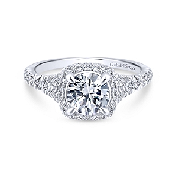 Solitaire with Cushion Halo and Split Diamond Shoulders Alloy Sample Ring Mount by Gabriel & Co. - ER12813R4ALZJJ