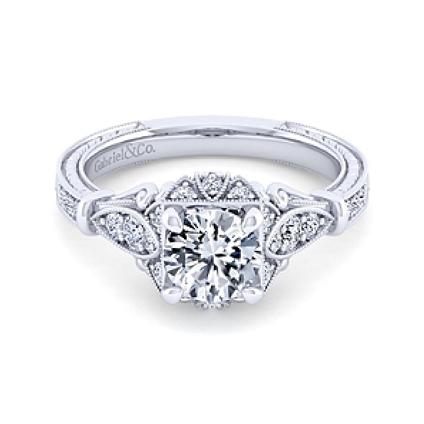 Solitaire with Diamond Shoulders and Vintage Style Accents Alloy Sample Ring Mount by Gabriel & Co. - ER12581R4ALZJJ