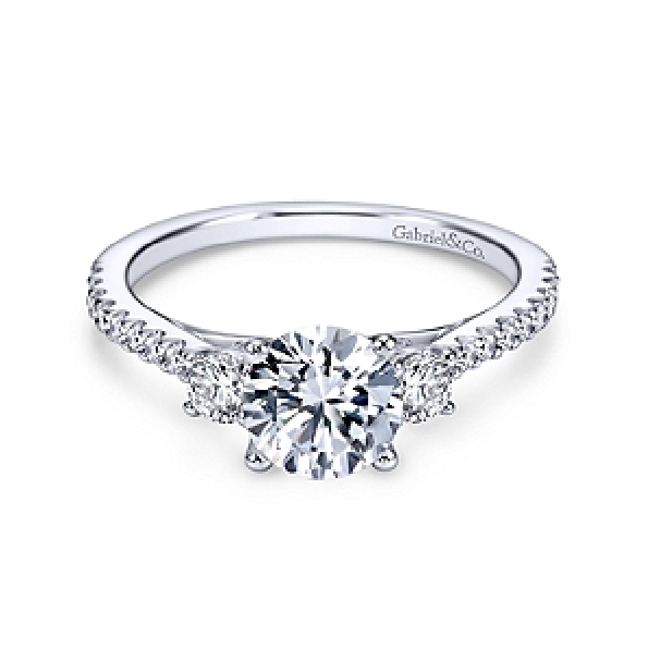 Three Stone with Diamond Shoulders Alloy Sample Ring Mount by Gabriel & Co. - ER7296R8ALZJJ