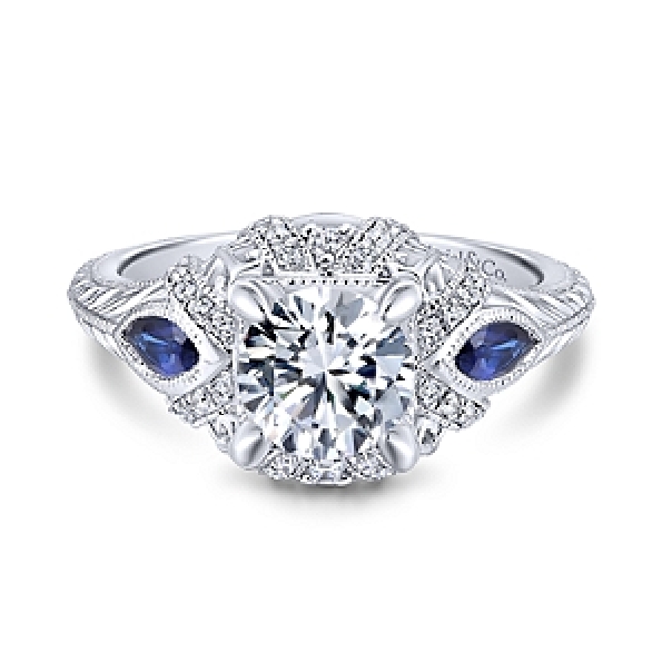 Solitaire with Vintage Accents and Two Sapphire Marquise Shoulder Stones Alloy Sample Ring Mount by Gabriel & Co. - ER12583R4ALZ28