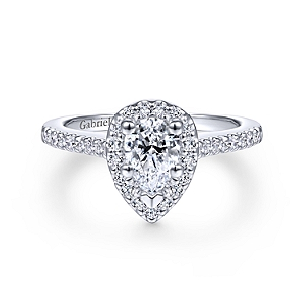 Pear with Halo and Diamond Shoulders Alloy Sample Ring Mount by Gabriel & Co. - ER5828ALZJJ