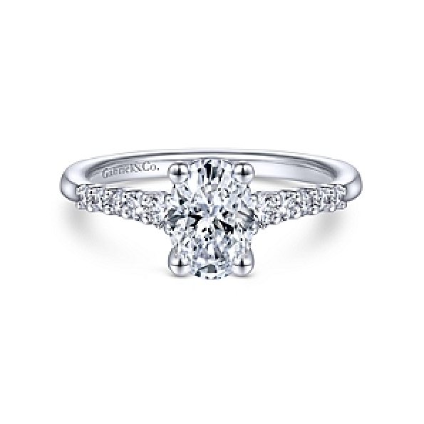 Oval Solitaire with Graduated Diamond Shoulders Alloy Sample Ring Mount by Gabriel & Co. - ER11755O3ALZJJ