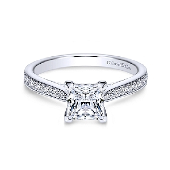 Princess Solitaire with Diamond Shoulders Alloy Sample Ring Mount by Gabriel & Co. - ER8916ALZJJ