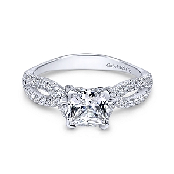 Princess Solitaire with Twist Diamond Shoulders Alloy Sample Ring Mount by Gabriel & Co. - ER11887S4ALZJJ