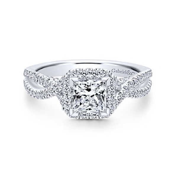 Princess with Halo and Twist Diamond Shoulders Alloy Sample Ring Mount by Gabriel & Co. - ER12600S3ALZJJ