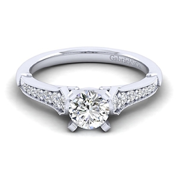 Solitaire with Vintage Detail and Diamond Shoulders Alloy Sample Ring Mount by Gabriel & Co. - ER11746R4ALZJJ